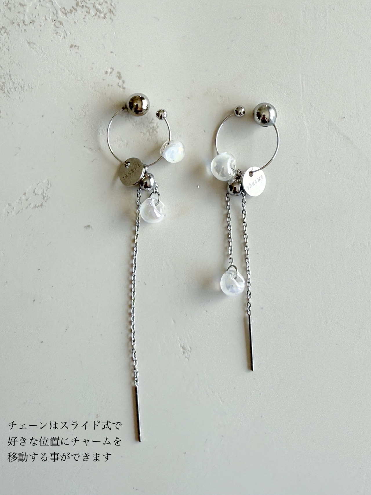 ✓チャームはスライドで移動可能